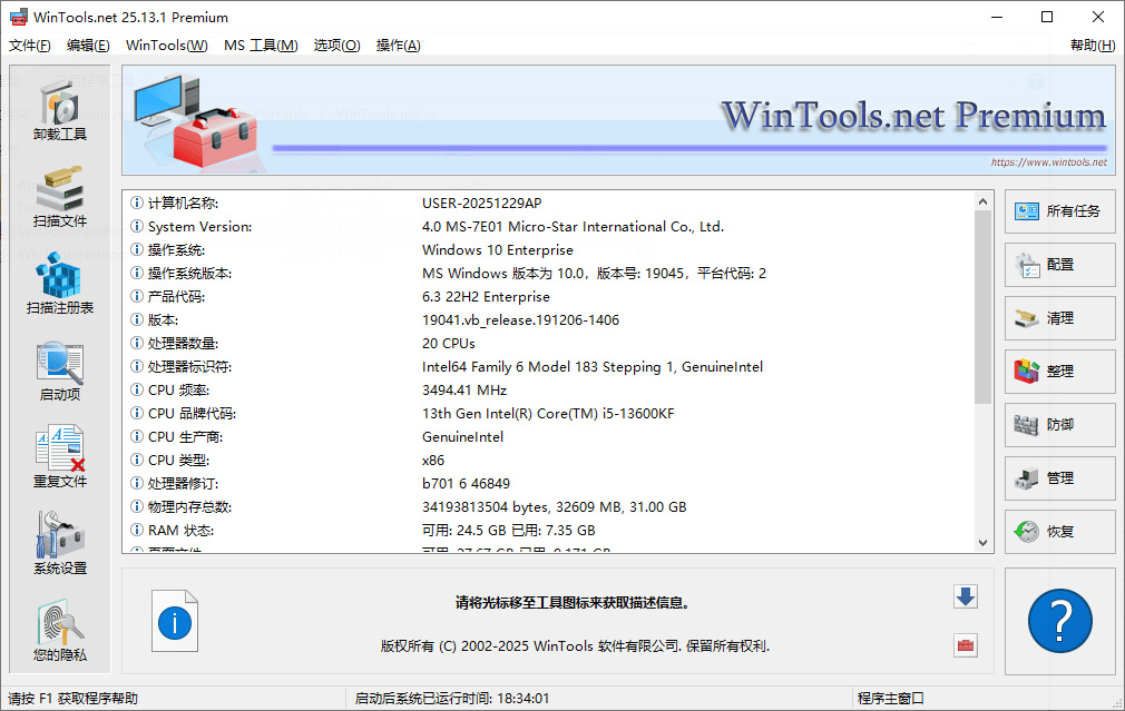 WinTools.net是一款功能强大的系统优化软件,主要用于修复Windows系统错误,加快电脑速度,保护个人隐私,例如清理无用的文件、注册表项、优化系统设置等。