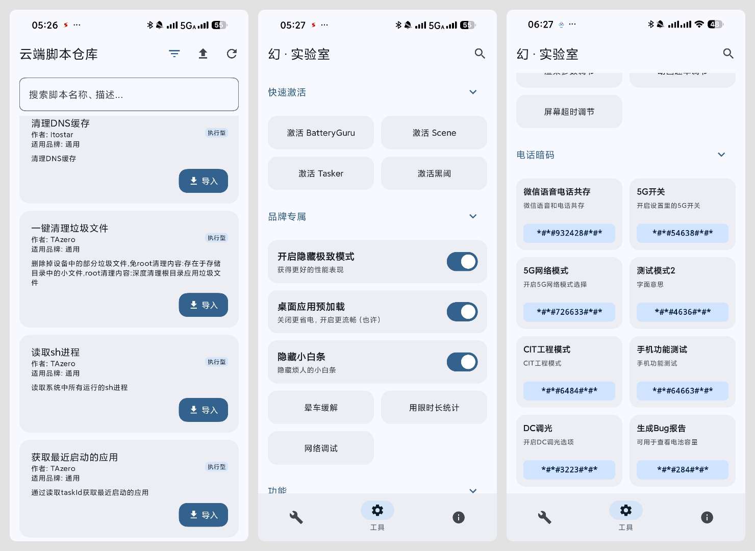 幻·实验室是一款集成了多种实用工具和脚本管理功能的应用。它新增了工具分类折叠、欧加真设备支持高刷、关闭改名联网验证等功能,并且提供了设置页面让用户自定义主页。此外,它还具有固定通知隐藏、分辨率和DPI调整、命令执行等实用功能。