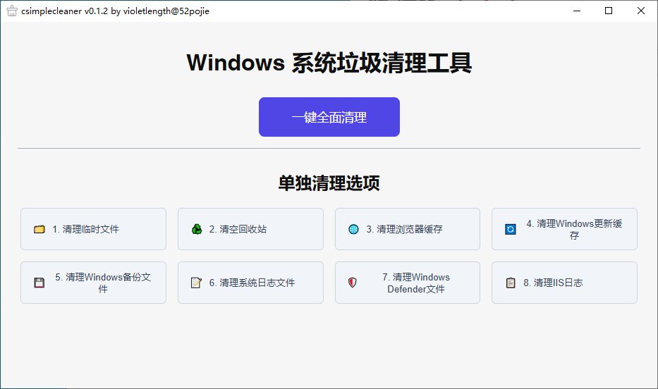 这是一个基于 Tauri v2 和 Vue 3 开发的 Windows 系统垃圾清理桌面应用程序,提供了图形化界面来执行常见的系统清理任务。
