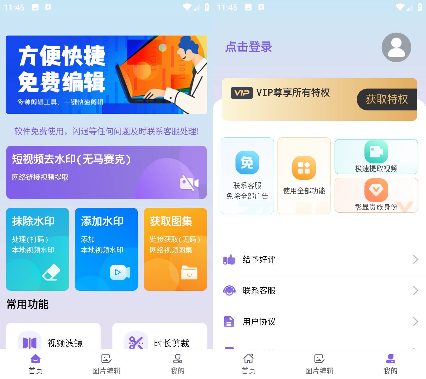 这是一款集去水印与基础剪辑于一体的安卓端视频处理工具,主打“链接解析”与“AI擦除”两大核心能力,旨在解决短视频二次创作中的素材获取与清理痛点。