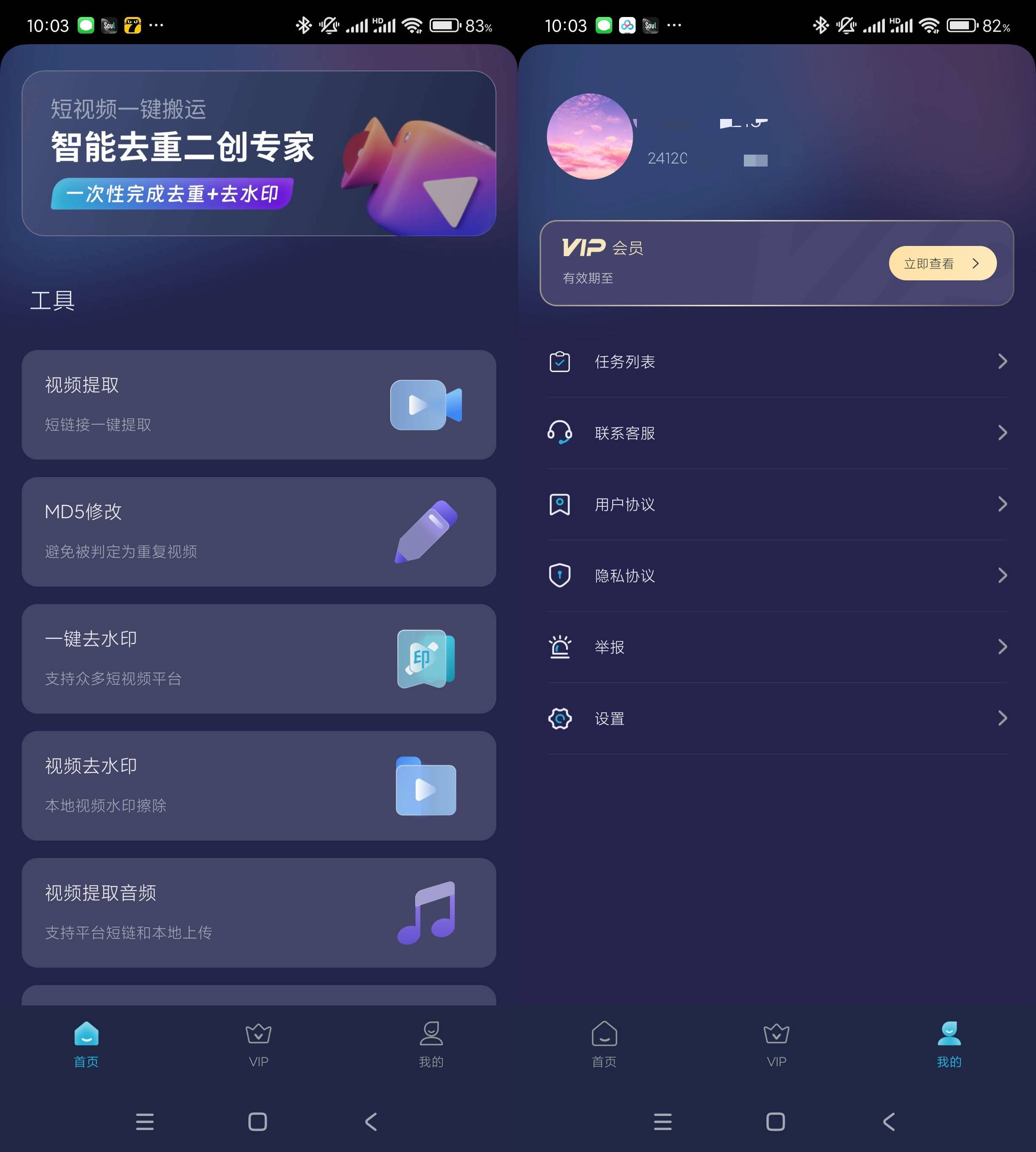 短视频一键搬运app是一款短视频全自动智能处理软件,自带去水印、改MD5码、敏感词检测等功能,视频二次处理伪原编辑神器,一天处理几千视频,解放双手降低成本。支持一键去水印、MD5修改、视频一键提取、视频提取文字、敏感词检测等功能。